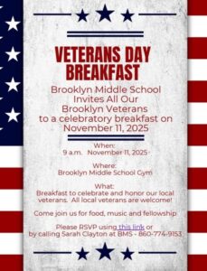 Veterans Day Breakfast, Brooklyn Middle School - 119 Gorman Road, Brooklyn, CT, United StatesDirections